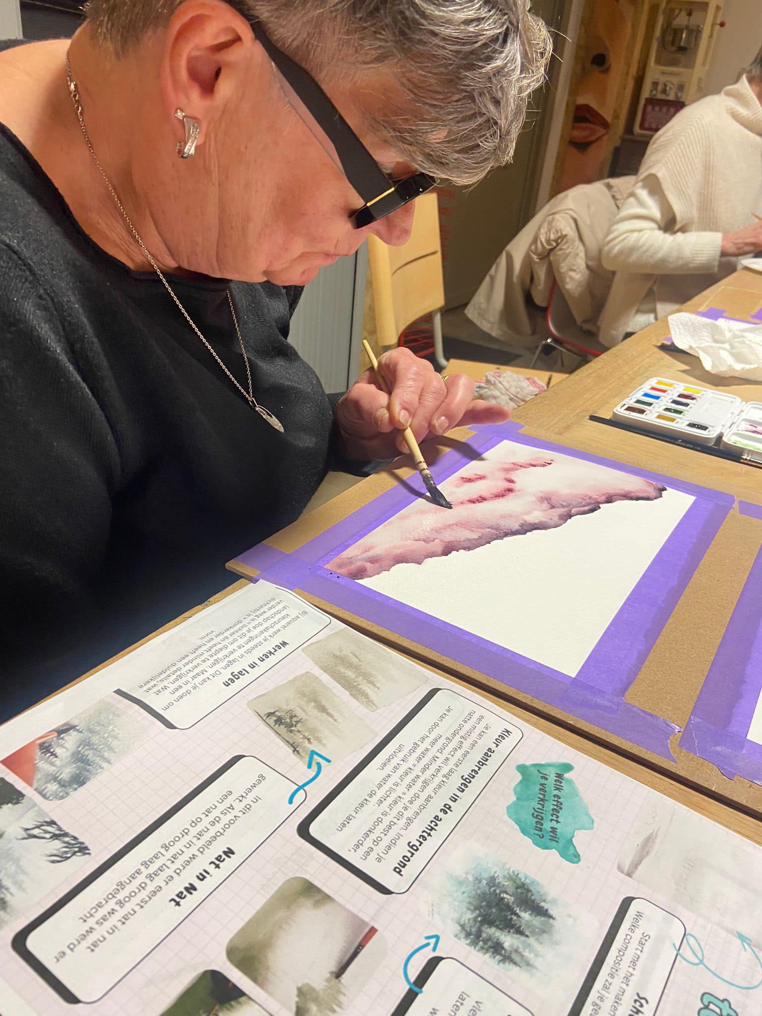 We leren aquarelleren, gaan aan het experimenteren en spitsen toe op een aantal technieken.